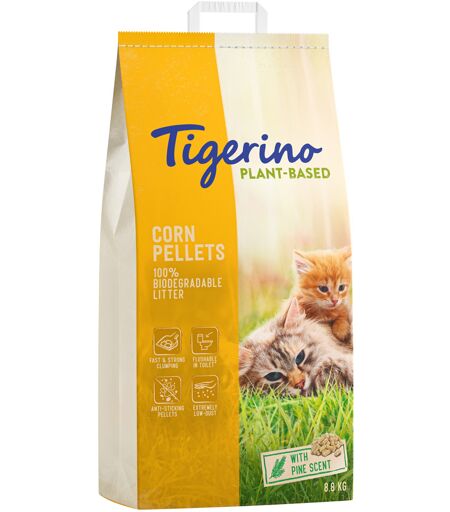 Litière Tigerino Plant-Based Maïs senteur pin pour chat – 14 l