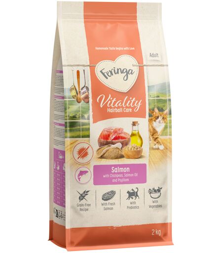 2 kg Feringa Vitality Hairball Care au saumon, croquettes pour chats