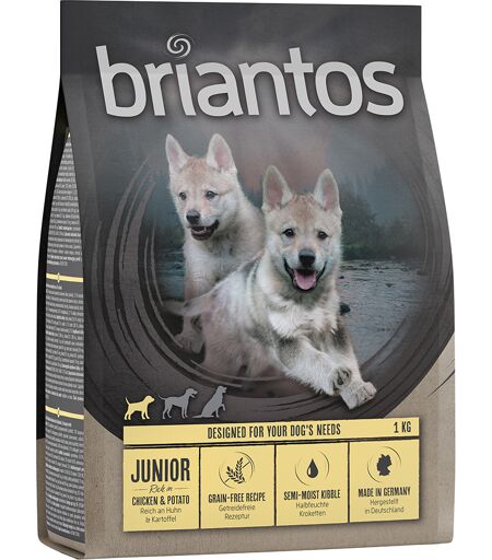 Testez-les ! Croquettes Briantos 1 kg pour chien - Junior poulet, pommes de terre - SANS CÉRÉALES