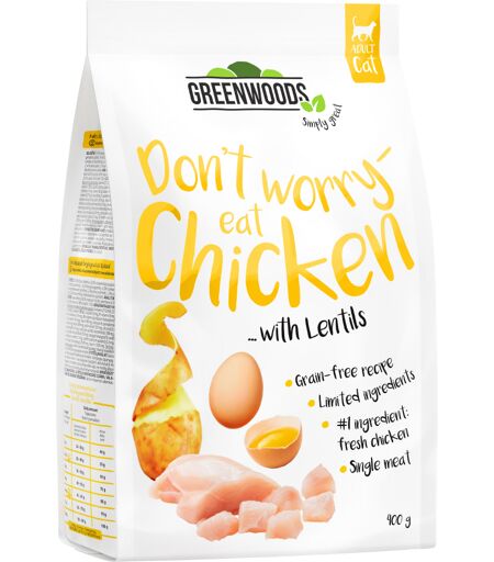 400g Greenwoods poulet, lentilles, pommes de terre, œuf - Croquettes pour chat