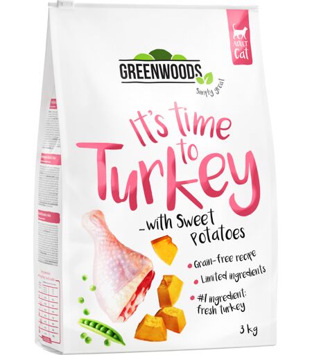 3kg Greenwoods dinde, patates douces, petits pois, potiron - Croquettes pour chat