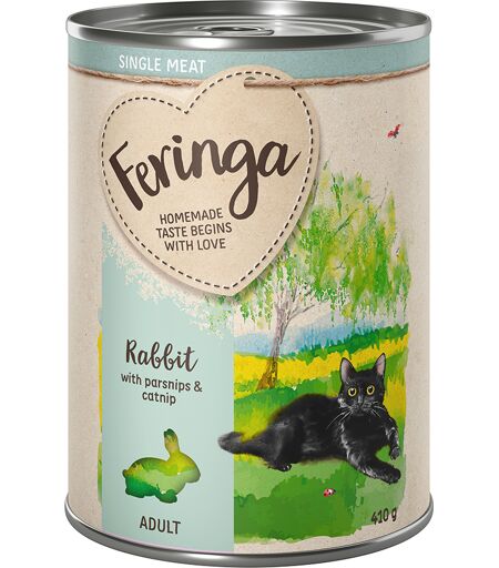 6x410g Feringa Single Meat Menus à la viande lapin, panais, menthe à chat - Pâtée pour chat
