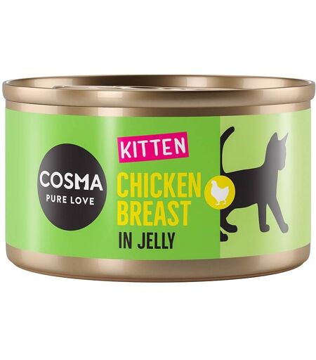 Cosma Original Kitten est une nourriture de qualité à base d'ingrédients frais et naturels et riche en viande ou en poisson, le tout servi dans une délicieuse gelée. Ces boîtes vous permettront d'offrir de savoureux repas à votre chaton.... ...