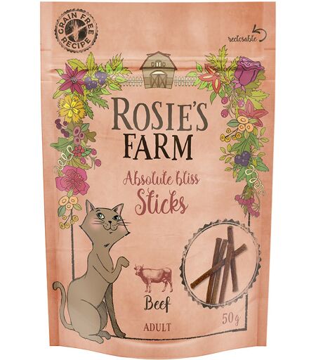 3x50g Friandises Sticks bœuf Rosie's Farm - Friandises pour chat