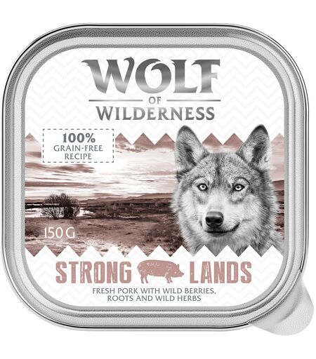 6x150g Wolf of Wilderness Adult Strong Lands porc - Pâtée pour chien