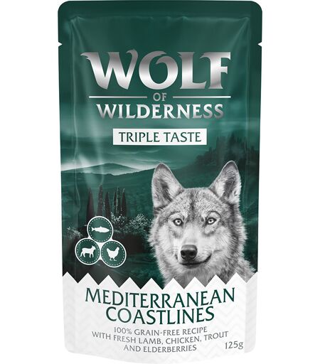 Wolf of Wilderness "Triple Taste" 12 x 125 g pour chien Mediterranean Coastlines - agneau, poulet, truite