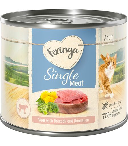 Feringa Single Meat Menus 6 x 200 g pour chat - veau, brocolis, pissenlit