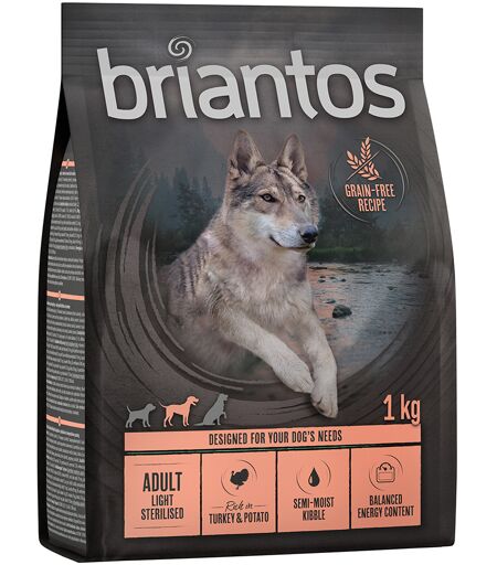 Testez-les ! Croquettes Briantos 1 kg pour chien - Adult Light/Sterilised dinde & pommes de terre - SANS CÉRÉALES