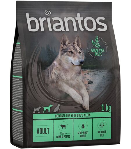 Testez-les ! Croquettes Briantos 1 kg pour chien - Adult agneau, pommes de terre - SANS CÉRÉALES