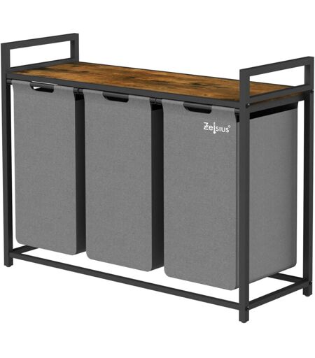 Panier à linge Zelsius 3 compartiments, gris, 92,5 x 33 x 72 cm, panier à linge avec étagère, bac à linge sale