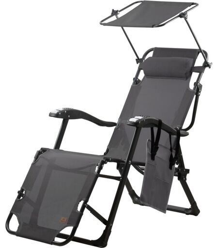 Chaise longue avec toit, Anthracite, Chaise longue de camping avec bras rouleaux de massage, Chaise longue de jardin - Campfeuer