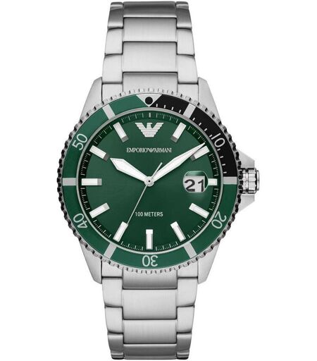 3Suisses : Habillez votre poignet avec style et modernité en portant cette Montre Homme AR11338 - Emporio Armani Diver. La marque Emporio Armani pour cette création nous révèle un design sportif et chic à la fois. Son cadran vert et sa lunette crantée bicolore offre la touche parfaite à votre look. On aime : son design ultra-sportif. Caractéristiques : Boîtier / Cadran : rond Couleur cadran : vert Lunette bicolore verte et noir Couleur boitier : argenté Diamètre boîtier : 42 mm Bracelet en acier inoxydable argenté Mouvement : quartz Etanchéité : 10 ATM Type de fermoir : boucle déployant Type de verre : saphir Fonctionnalités Affichage analogique : heures, minutes et secondes Calendrier Type: Montre Marque: Emporio Armani Montres Genre: Homme Styles: Classique Age: Adulte Couleur du bracelet: Argent Mouvement: Quartz Matière Bracelet: Acier Conditionnement: Ecrin de la marque Garantie: 2 Ans Type de garantie: Fabricant Affichage: Analogique Etanchéité: 100 m (10 ATM) Matière Boitier: Acier Forme de Boitier: Rond Couleur du cadran: Vert Verre: Saphir Type Fermeture: Boucle déployante Diamètre Boitier: 42 mm ...