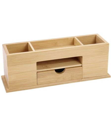 Informations techniques Dimensions produit, hauteur : 98 mm Dimensions produit, largeur : 85 mm Désignation du produit : Moso Bamboo Desk Organizer, 6 Compartments Emballage sans plastique : Emballage sans plastique Longueur : 276 mm Matériau : Bambou Nombre de compartiments : 5 Organiseur de table SpeaKa Professional Bambus, 5 compartiments Rangement sur le bureau Votre bureau est-il en proie au chaos et au désordre ? L'organiseur pratique avec ses 5 compartiments garantit l'ordre. Dans les compartiments extra-profonds, les stylos, les ciseaux, les règles et autres agents de bureau trouvent leur place et sont prêts à être utilisés immédiatement. Mais vous ne pouvez pas utiliser l'organiseur uniquement au bureau. Grâce à son design moderne et intemporel, il s'adapte parfaitement à d'autres pièces et est polyvalent. Utilisez l'organiseur de table, par exemple dans la cuisine, pour ranger des cuillères de cuisson, des brosses à neige ou d'autres ustensiles de cuisine. Ou utilisez-le en ...