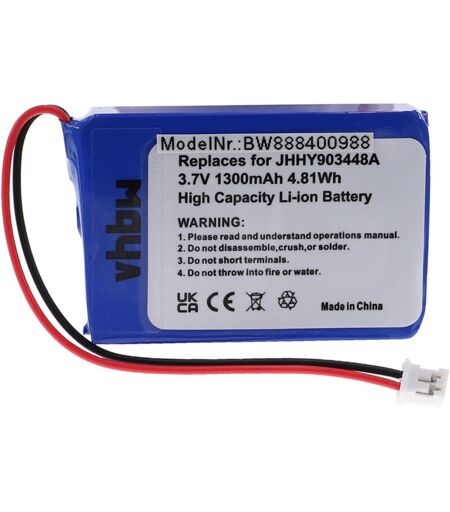 vhbw - the clever way - Batterie de rechange de haute qualité avec une grande autonomie et compatible avec votre radio talkie-walkie (vous trouverez ci-dessous tous les modèles correspondants) - Nos batteries répondent à toutes les normes de sécurité actuelles CONTENU DE LIVRAISON : - 1x batterie DONNÉES TECHNIQUES : - Technologie : Li-ion - sans effet mémoire - Capacité : 1300 mAh - Tension : 3,7 V - Énergie nominale : 4,81 Wh - Nombre de cellules : 1 COMPATIBLE AVEC : - Midland / Albrecht TecTalk Float Pour garantir la compatibilité, veuillez vérifier si votre batterie utilisée actuellement est répertoriée. REMPLACEMENT POUR : - Midland / Albrecht JHHY903448A, 083448 vhbw - Accessoires et pièces de rechange de haute qualité pour prolonger la durée de vie de vos appareils électriques. ...
