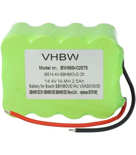 vhbw - the clever way - Batterie de rechange de haute qualité et compatible avec une grande autonomie et compatible avec votre aspirateur ou aspirateur robot ainsi qu'appareil de nettoyage (vous trouverez ci-dessous tous les modèles correspondants) - Nos batteries répondent à toutes les normes de sécurité actuelles Pour répandre une odeur fraîche avec votre robot aspirateur ou votre aspirateur, vous pouvez consulter nos offres de cartouches de parfum. CONTENU DE LIVRAISON : - 1x batterie DONNÉES TECHNIQUES : - Technologie : NiMH - Capacité : 2500 mAh - Tension : 14,4 V - Énergie nominale : 36 Wh - Hauteur : environ 4,5 mm - Nombre de cellules : 12 - Poids : 480 g - Dimensions (L x l x H): 9,3 x 6,8 x 4,5 cm COMPATIBLE AVEC : - Shark SV719 - Shark SV726N - Shark SV70ZN - Shark SV726N (14.4V) - Shark Sweeper SV70 Pour garantir la compatibilité, veuillez vérifier si votre batterie utilisée actuellement est répertoriée. REMPLACEMENT POUR : - Bosch FD8901, GP180SCHSV12Y2H, GPRHC18SV007, VBH14401/03, VXAS010V00, 00751992, Euro Pro D-SC-P, SV70Z, XB14726, Shark D-SC-P, SV70Z, XB14726 vhbw - Accessoires et pièces de rechange de haute qualité pour prolonger la durée de vie de vos appareils électriques. ...
