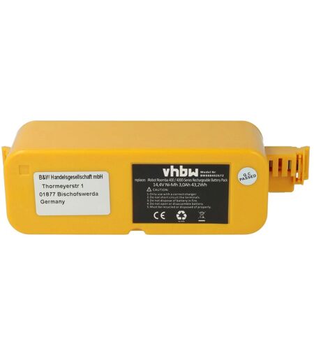vhbw Batterie compatible avec iRobot Roomba 5105, 5210, 5250, 4905, 4978, Discovery 400, Discovery SE, FloorVac 400 aspirateur, jaune (3000mAh, 14,4V, NiMH)