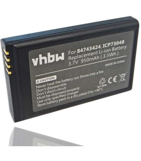 vhbw - the clever way - Batterie de rechange de haute qualité avec une grande autonomie et compatible avec votre téléphone (vous trouverez ci-dessous tous les modèles correspondants) - La batterie peut être chargée avec le chargeur standard ou un chargeur compatible - Nos batteries répondent à toutes les normes de sécurité actuelles CONTENU DE LIVRAISON : - 1x batterie DONNÉES TECHNIQUES : - Technologie : Li-ion - sans effet mémoire - Capacité : 950 mAh - Tension : 3,7 V - Énergie nominale : 3,52 Wh - Nombre de cellules : 1 COMPATIBLE AVEC : - Polycom Kirk 4080 Pour garantir la compatibilité, veuillez vérifier si votre batterie utilisée actuellement est répertoriée. REMPLACEMENT POUR : - 84743424, 84743428, ICP73048 vhbw - Accessoires et pièces de rechange de haute qualité pour prolonger la durée de vie de vos appareils électriques. ...