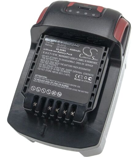 vhbw - the clever way - Batterie de rechange de haute qualité et compatible avec une grande autonomie pour votre outil électrique comme votre perceuse, marteau piqueur, ponceuse, tournevis, outil de cerclage ainsi que votre radio, scie à main et taille-bordures - Cette batterie est aussi idéale comme deuxième batterie - Nos batteries respectent toutes les normes légales Accessoire compatible de haute perfomance de la marque vhbw. CONTENU DE LIVRAISON : - 1x batterie DONNÉES TECHNIQUES : - Technologie : Li-ion - sans effet-mémoire - Capacité : 4000 mAh - Tension : 20 V - Énergie nominale : 80 Wh - Couleur : noir - Nombre de cellules : 5 COMPATIBLE AVEC : - Ingersoll Rand W5330 - Ingersoll Rand W5350 - Ingersoll Rand W7150 - Ingersoll Rand W7250 Pour garantir la compatibilité, veuillez vérifier si votre batterie utilisée actuellement est répertoriée. REMPLACEMENT POUR : - Ingersoll Rand BL2010, BL2012, BL2022 vhbw - Accessoires et pièces de rechange de haute qualité pour prolonger la durée de vie de vos appareils électriques. ...