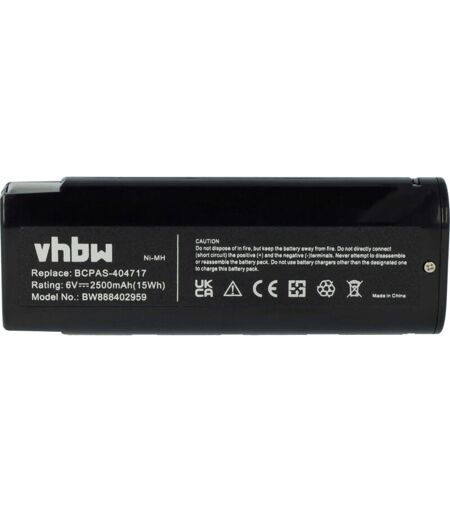 vhbw - the clever way - Batterie de rechange de haute qualité et compatible avec une grande autonomie pour votre outil électrique comme votre perceuse, marteau piqueur, ponceuse, tournevis, outil de cerclage ainsi que votre radio, scie à main et taille-bordures - Cette batterie est aussi idéale comme deuxième batterie - Nos batteries respectent toutes les normes légales Accessoire compatible de haute perfomance de la marque vhbw. CONTENU DE LIVRAISON : - 1x batterie DONNÉES TECHNIQUES : - Poids : 210 g - Technologie : NiMH - Capacité : 2500 mAh - Tension : 6 V - Énergie nominale : 15 Wh - Couleur : Noir - Nombre de cellules : 5 - Dimensions : 13,6 x 5 x 3,2 cm COMPATIBLE AVEC : - Paslode Impulse IM350 Nail Gun - Paslode Impulse IM45 CW - Paslode Impulse IM45GN - Paslode Impulse IM50 F18 Pour garantir la compatibilité, veuillez vérifier si votre batterie utilisée actuellement est répertoriée. REMPLACEMENT POUR : - Paslode 900400, 900420, 900421, 900600, 901000, 902000, B20544E, B20720, ...