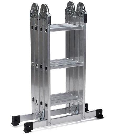 SOLID W3 - Sécurité certifiée, confort maximal et fonctions innovantes Vous avez besoin d'une échelle qui peut tout simplement en faire plus ? Alors la SOLID W3 vous convaincra sur toute la ligne ! Cette échelle multifonctions véritablement polyvalente séduit par sa fiabilité et sa stabilité. Grâce aux options de réglage multifonctionnelles, vous pouvez utiliser toutes les fonctions avec un seul outil de travail en quelques gestes. Selon l'utilisation, ce modèle peut ainsi servir d'escabeau à simple ou double accès, d'échelle simple ou de plateforme de travail. Votre sécurité est également assurée à plusieurs reprises. En aluminum robuste, cette échelle est dotée de pieds antidérapants caoutchoutés, de barreaux profilés arrondis et de joints de sécurité avec mécanisme de verrouillage pour une utilisation parfaitement sûre. 4 en 1 : échelle multifonctions avec jusqu'à 4 variantes de montage, utilisation flexible en tant qu'escabeau à simple ou double accès, échelle simple ou plateforme de travail Hauteur de travail variable de 91,5 cm à 345 cm maximum. (Pour le détail des différentes hauteurs de travail, voir le dessin technique). Pour les bricoleurs ou les professionnels : idéale pour un accès rapide et facile aux objets du quotidien placés en hauteur Châssis en aluminium solide - particulièrement léger à transporter pour une utilisation flexible Plateforme en acier robuste Avec 6 joints de sécurité articulés pour le verrouillage pour une utilisation sûre. En clipsant et déclipsant les joints, vous pouvez monter différents modèles d'échelle selon vos besoins et les utilisations que vous souhaitez en faire. Les barreaux avec stries antidérapantes empêchent que l'échelle glisse et garantissent un maintien sûr. Inclut 2 plateformes en acier antidérapantes et structurées en complément pour une utilisation confortable et sûre de la plateforme de travail. Grâce à sa fonction de pliage pratique, l'échelle est facile et peu encombrante à ranger ou transporter. Stabilité optimale grâce à des traverses de sol extra larges avec patins en plastique antidérapants et ménageant le sol Cet article est livré complètement assemblé Fabricant: hjh OFFICE Couleur: Argent Etat: Sortant d'usine, emballage d'origine Garantie: 24 mois ...