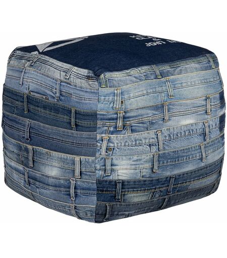 Womo-design - Pouf Carré Bleu Pittsburgh 45 cm en Jeans Rembourrage en Flocons de Coton Tabouret de Salon Fait à la Main Siège Cube Coussin de Sol