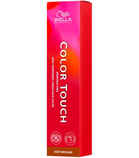 Wella Professionals Color Touch est une coloration semi-permanente pour une brillance ultime et des couleurs de cheveux éclatantes. La formule douce contient la Metal Purifier Technology pour une plus grande sécurité de la couleur et donc des résultats de coloration encore plus fiables - même sur les cheveux abîmés. Végétalien, sans ammoniaque, silicone ni huile minérale. Plus de 90 nuances vives, miscibles entre elles. Des résultats de couleurs vives qui s'estompent uniformément après 28 lavages. Jusqu'à 70 % de couverture des cheveux gris avec des racines qui repoussent harmonieusement. Application optimisée avec un flacon ou un pinceau et un bol. Formule sans gouttes pour une application ultra-précise. À utiliser avec l'émulsion Color Touch. Emballage recyclé jusqu'à 100 %. Application : Utilise des gants appropriés.Applique la masse colorante sur les cheveux séchés à la serviette. Temps de pose : jusqu'à 20 min. Avec Climazon jusqu'à 15 min. Racines : en cas de racines visibles, appliquer d'abord la masse colorante sur la zone des racines. Égalisation de la couleur : Pour un rafraîchissement minimal : appliquer la couleur sur les longueurs et les pointes pendant les 5 dernières minutes du temps de pose.Pour un rafraîchissement maximal : appliquer la couleur dans les longueurs et les pointes et utiliser tout le temps de pose.Peut également être utilisé sur les longueurs et les pointes si une coloration permanente Wella Professionals est utilisée à la racine. Cheveux déjà éclaircis : temps de pose de 5 à 20 minutes, selon la structure des cheveux ou l'intensité souhaitée. Avertissement : les colorants capillaires peuvent provoquer de graves réactions allergiques. Veuillez lire et respecter les indications suivantes. Ce produit n'est pas destiné aux personnes de moins de 16 ans. Les tatouages temporaires au "henné noir" peuvent augmenter le risque d'allergie. NE TEINTEZ PAS VOS CHEVEUX SI : - vous avez une éruption cutanée sur le visage ou si votre cuir chevelu est sensible, irrité ou blessé, - vous avez déjà constaté une réaction après avoir coloré vos cheveux, - un tatouage temporaire au "henné noir" vous a déjà causé une réaction. Réservé à un usage professionnel. Bien rincer les cheveux après l'application. En cas de contact avec les yeux, rincer immédiatement. Ne pas utiliser pour colorer les cils et les sourcils. Porter des gants appropriés. Effectuez un test de tolérance cutanée pour chaque client, avant chaque coloration. Ne doit pas être laissé à la portée des enfants. H315 Provoque une irritation cutanée, H318 Provoque des lésions oculaires graves, H317 Peut provoquer une réaction allergique cutanée. ...