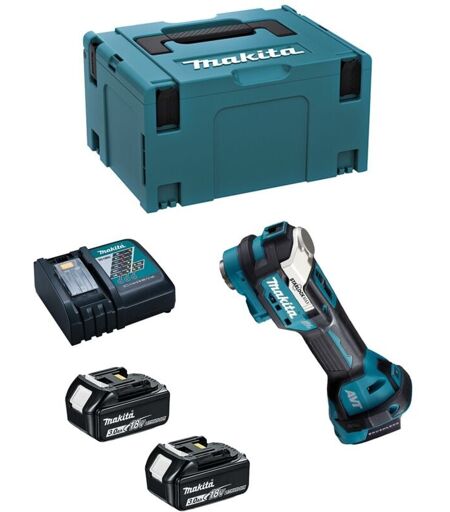 Dtm 52 rfj Outil multifonction Découpeur-ponceur sans fil Brushless Starlock Max 18 v + 2x Batteries 3,0Ah + Chargeur + Coffret Makpac - Makita