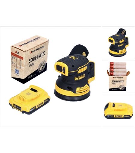 DeWalt DCW 210 N Ponceuse excentrique sans fil 18 V 125 mm Brushless + 1x batterie 2,0 Ah + 1x Toolbrothers SPIDER Set filet de ponçage - sans