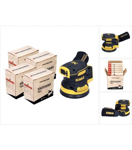 DeWalt DCW 210 N Ponceuse excentrique sans fil 18 V 125 mm Brushless Solo + 4x Toolbrothers TURTLE Set de disques de ponçage