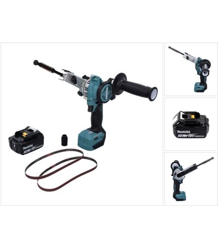 Contenu de la livraison: - 1x Makita DBS 180 lime à bande sans fil 18 V 9 x 533 mm Brushless - 1x poignée supplémentaire - 2x bande abrasive K80 - 1x adaptateur d'aspiration - 1x collier de serrage - 1x BL 1830 B batterie avec 3, 0 Ah - 18 V et indicateur de charge LED - sans chargeur Description du produit: La lime à bande sans fil Makita DBS 180 convainc par sa bonne flexibilité et ses performances. Le moteur est sans balais (brushless), ce qui permet une plus grande endurance, une durée de vie plus longue et une construction plus compacte. De plus, la vitesse de la bande peut être réglée sur 5 niveaux différents. Grâce à sa largeur de bande de 9 mm, la lime est parfaite pour les travaux dans les endroits étroits, les contours accessibles, les arrondis et les cordons de soudure. En outre, la poignée latérale fournie est très pratique, car elle garantit un guidage facile et sûr. La fermeture à serrage rapide permet en outre de changer rapidement et facilement la bande abrasive. En ...
