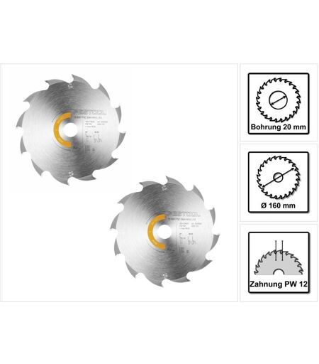 Festool - 2x lame de scie circulaire Wood Rip Cut hw 160 x 1,8 x 20 mm PW12 ( 2x 205550 ) pour scies plongeantes ts 55 f, tsc 55 k & scies