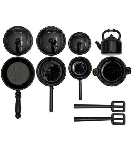Ustensiles De Cuisine Miniatures - Noir - 7 Pcs Pour Lutin - Rico Design Bois