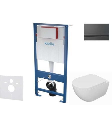 Genesis - Set bâti-support, cuvette Oudee, abattant softclose et plaque de déclenchement Gemini i, noir brillant 30505SS67 - Kielle