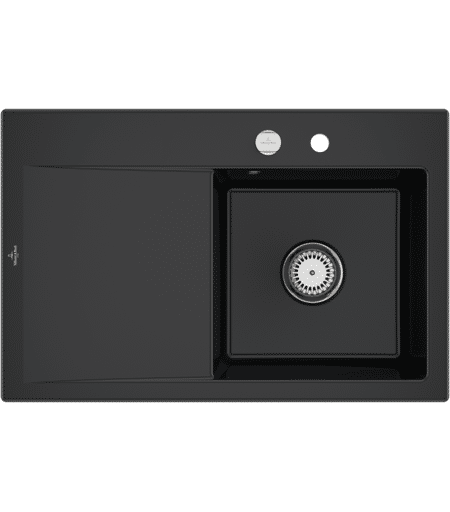 Villeroy und Boch Villeroy et Boch Subway Style 45 évier encastrable 334702R7 droite, avec garniture de vidage , actionnement excentrique, noir pur, 78 x 51 cm