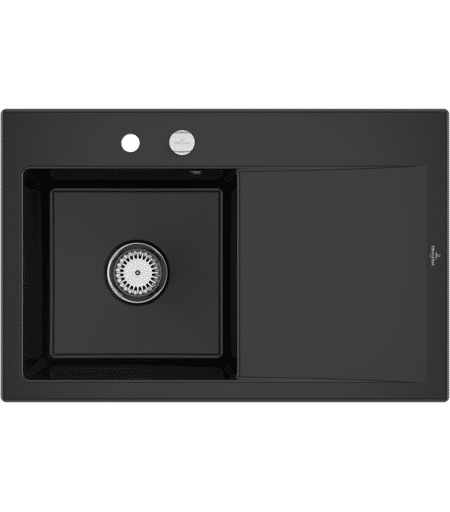 Villeroy und Boch Villeroy et Boch Subway Style 45 Évier plat à encastrer 334802R7 gauche, avec garniture de vidage , actionnement excentrique, noir pur, 78 x 51 cm