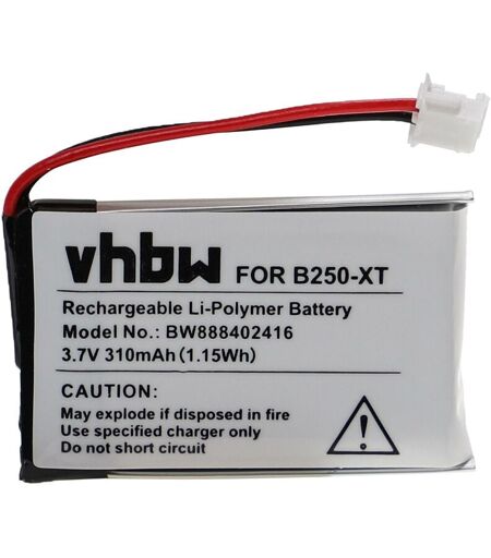 vhbw - the clever way - Batterie de rechange de haute qualité avec une grande autonomie et compatible avec votre casque audi ou écouteurs sans fil (vous trouverez ci-dessous tous les modèles correspondants) - Nos batteries répondent à toutes les normes de sécurité actuelles CONTENU DE LIVRAISON : - 1x batterie DONNÉES TECHNIQUES : - Technologie : Li-polymère - Capacité : 310 mAh - Tension : 3,7 V - Énergie nominale : 1,15 Wh - Nombre de cellules : 1 Pour garantir la compatibilité, veuillez vérifier si votre batterie utilisée actuellement est répertoriée. REMPLACEMENT POUR : - BlueParrot 80-7927-00-00, 89-1343-00-00, BT190545 vhbw - Accessoires et pièces de rechange de haute qualité pour prolonger la durée de vie de vos appareils électriques. ...