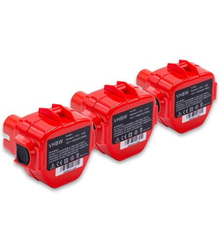 vhbw 3x batterie compatible avec Makita VR250DA, VR250DWAE, VR251D, VR251DWDE outil électrique (1500mAh NiMH 12V)