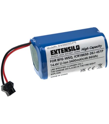 vhbw - the clever way - Batterie de rechange de haute qualité et compatible avec une grande autonomie et compatible avec votre aspirateur robot ainsi qu'appareil de nettoyage (vous trouverez ci-dessous tous les modèles correspondants) - Nos batteries répondent à toutes les normes de sécurité actuelles Pour répandre une odeur fraîche avec votre robot aspirateur ou votre aspirateur, vous pouvez consulter nos offres de cartouches de parfum. CONTENU DE LIVRAISON : - 1x batterie DONNÉES TECHNIQUES : - Technologie : Li-ion - pas d'effet mémoire - Capacité : 3400 mAh - Tension : 14,4 V - Énergie nominale : 48,96 Wh - Couleur : bleu - Nombre de cellules : 4 COMPATIBLE AVEC : - Eufy Robovac G30 Hybrid - Eufy Robovac G30 Hybrid G30 Verge - Eufy Robovac G30 Verge - Eufy Robovac L35 Pour garantir la compatibilité, veuillez vérifier si votre batterie utilisée actuellement est répertoriée. REMPLACEMENT POUR : - Ecovacs BFG-WSQ, ICR18650-26J-4S1P, UR18650ZY-4S1P-AAM, 10001866, 10002265, 10002611, Cecotec CONG1002, Eufy PA04 vhbw - Accessoires et pièces de rechange de haute qualité pour prolonger la durée de vie de vos appareils électriques. ...
