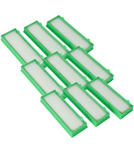 vhbw - the clever way Set de 9x filtre HEPA pour votre aspirateur, robot aspirateur, nettoyeur vapeur - Conservez la capacité d'aspiration en changeant régulièrement votre filtre - Filtre les particules ultra-fines de l'air d'échappement Les filtres HEPA puissant de la marque vhbw sont dotés d'une surface filtrante plus grande que les filtres standards et garantissent un air intérieur sans poussière et sans poil d'animaux. Ce type de filtre est idéal pour les personnes souffrant d'allergies. CONTENU DE LIVRAISON : - 9x filtres d'aspirateur DONNÉES TECHNIQUES : - Dimensions (L x l x H): 13,8 x 5 x 5,8 cm - Forme : rectangulaire - Couleur : blanc / vert COMPATIBLE AVEC : - Vorwerk Kobold VR-300 - Vorwerk Kobold VR300 - Vorwerk Kobold VR-200 - Vorwerk Kobold VR200 vhbw - Accessoires et pièces de rechange de haute qualité pour prolonger la durée de vie de vos appareils électriques. ...