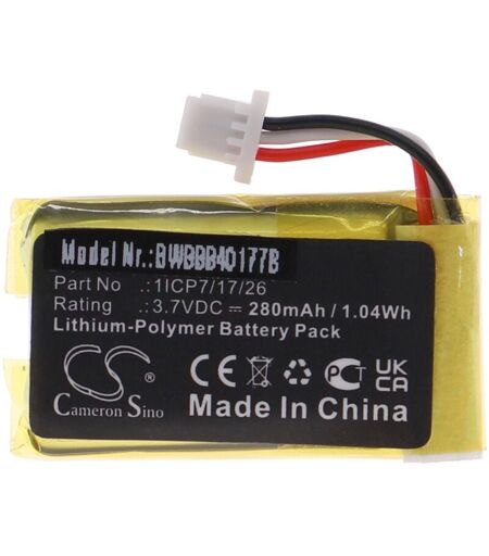 vhbw - the clever way - Batterie de rechange de haute qualité avec une grande autonomie et compatible avec votre interphone ou sonnette de porte avec caméra (vous trouverez ci-dessous tous les modèles correspondants) - Nos batteries répondent à toutes les normes de sécurité actuelles CONTENU DE LIVRAISON : - 1x batterie DONNÉES TECHNIQUES : - Technologie : Li-polymère - Capacité : 280 mAh - Tension : 3,7 V - Énergie nominale : 1,04 Wh - Nombre de cellules : 1 COMPATIBLE AVEC : - Google Nest Hello Pour garantir la compatibilité, veuillez vérifier si votre batterie utilisée actuellement est répertoriée. REMPLACEMENT POUR : - 1ICP7/17/26 vhbw - Accessoires et pièces de rechange de haute qualité pour une longue durée de vie de vos appareils électriques. ...