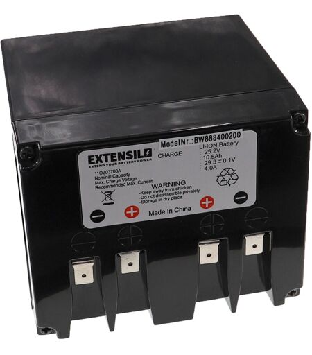 - Batterie de rechange de haute qualité avec une grande autonomie et compatible avec votre outil de jardinage (vous trouverez ci-dessous tous les modèles correspondants) - Nos batteries répondent à toutes les normes de sécurité actuelles CONTENU DE LIVRAISON : - 1x batterie DONNÉES TECHNIQUES : - Technologie : Li-ion - sans effet mémoire - Capacité : 10500 mAh - Tension : 25,2 V - Énergie nominale : 264,6 Wh - Nombre de cellules : 7 COMPATIBLE AVEC : - Ambrogio L200 elite retrò - Ambrogio L200 Deluxe 1B - Ambrogio L200 Deluxe 2B Pour garantir la compatibilité, veuillez vérifier si votre batterie utilisée actuellement est répertoriée. REMPLACEMENT POUR : - 110Z03700A, Typ B Batteries Premium de la marque EXTENSILO pour les exigences les plus élevées. Nos batteries de rechange ont été développées pour de hautes performances et une durée de vie maximale. ...