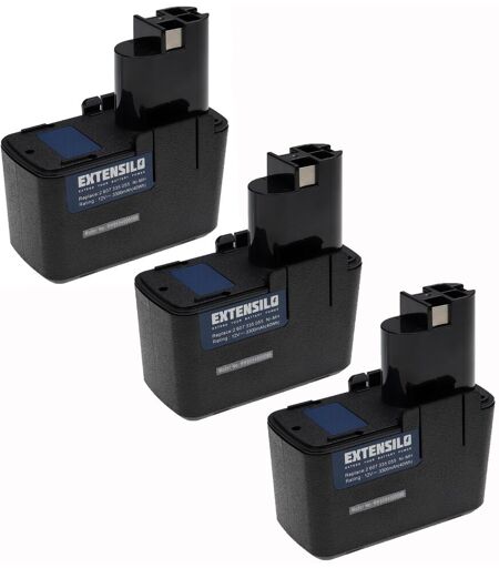 VHBW EXTENSILO 3x Batteries compatible avec Bosch AHS 3, AHS 4, AHS A, ASG 52, ATS 12-P, B2300, B2310, B2500 outil électrique (3300 mAh, NiMH, 12 V)