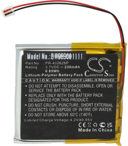 vhbw - the clever way - Batterie de rechange de haute qualité et compatible avec une grande autonomie et compatible avec votre montre connectée smartwatch ainsi que pour votre bracelet fitness (vous trouverez ci-dessous tous les modèles correspondants) - La batterie peut être chargée avec le chargeur standard ou un chargeur compatible - Nos batteries répondent à toutes les normes de sécurité actuelles CONTENU DE LIVRAISON : - 1x batterie DONNÉES TECHNIQUES : - Technologie : Li-polymère - Capacité : 230 mAh - Tension : 3,7 V - Énergie nominale : 0,85 Wh - Nombre de cellules : 1 COMPATIBLE AVEC : - Suunto Spartan Trainer Wrist Heart Rate Sport - Suunto Spartan Trainer Pour garantir la compatibilité, veuillez vérifier si votre batterie utilisée actuellement est répertoriée. REMPLACEMENT POUR : - Suunto PR-402626P vhbw - Accessoires et pièces de rechange de haute qualité pour prolonger la durée de vie de vos appareils électriques. ...