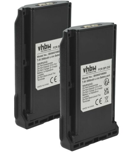 vhbw 2x Batterie compatible avec Icom IC-F44GS, IC-F44G, IC-F44GT radio talkie-walkie (2500mAh, 7,4V, Li-ion)