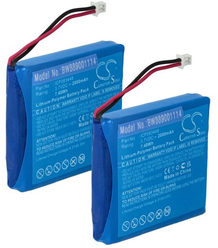 vhbw 2x Batterie remplacement pour Stabo JHHY903448A, ICP083448 pour radio talkie-walkie (2000mAh, 3,7V, Li-polymère)