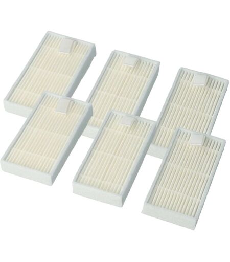 vhbw - the clever way Set de 6x filtre HEPA pour votre aspirateur, robot aspirateur ou nettoyeur vapeur - Gardez la puissance d'aspiration en changeant régulièrement votre filtre - Filtre les particules ultra-fines de l'air d'échappement Les filtres HEPA puissant de la marque vhbw sont dotés d'une surface filtrante plus grande que les filtres standards et garantissent un air intérieur sans poussière et sans poil d'animaux. Ce type de filtre est idéal pour les personnes souffrant d'allergies. CONTENU DE LIVRAISON : - 6x filtres d'aspirateur DONNÉES TECHNIQUES : - Classe de filtre : H11 - Dimensions (L x l x H) : 8,2 x 4,2 x 4 cm - Poids par filtre : 21 g - Forme : rectangulaire - Couleur : blanc COMPATIBLE AVEC Sichler PCR-2000, PCR-8500LX, NC-5725-919 vhbw - Accessoires et pièces de rechange de haute qualité pour prolonger la durée de vie de vos appareils électriques. ...