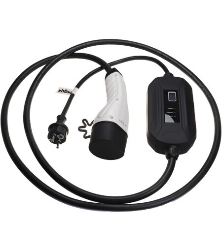 vhbw - the clever way Câble de recharge de haute qualité pour votre voiture électrique Ce câble de recharge de la marque vhbw vous permet de recharger votre voiture électrique ou votre véhicule hybride rechargeable, sur un système de recharge EV/PHEV avec une prise standard de 230 V (prise euro à 2 pôles de type F). Grâce à l'écran LCD intégré avec affichage de l'état de charge, vous avez toujours sous les yeux toutes les données de recharge pertinentes et les paramètres les plus importants. CONTENU DE LIVRAISON : - 1x câble de recharge DONNÉES TECHNIQUES : - Connectivité : 1x fiche type 2, 1x fiche euro (type F) - Longueur du câble : 3 m - Intensité du courant : maximum 16 A (monophasé) - Puissance de charge : jusqu'à 3,5 kW - Tension d'entrée AC : 250 V - Matériau : plastique / métal - Couleur : noir / blanc - Poids : 1,6 kg - Certification CE, prise de charge type 2 selon la norme IEC 62196-2 - Étanche à l'eau selon IP 55 - Avec capuchon de protection en caoutchouc - Avec affichage LCD de l'état de charge - Protection contre la surchauffe, la surtension et la sous-tension COMPATIBLE AVEC : - MG 5 Electric - MG EHS - MG Marvel R - MG ZS EV vhbw - Accessoires et pièces de rechange de haute qualité pour prolonger la durée de vie de vos appareils électriques. ...