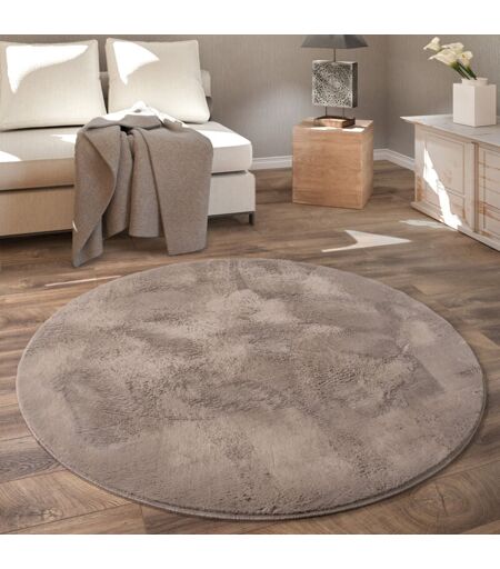 Tapis De Salon, Rond Petit Tapis En Fausse Fourrure, Chambre d'Enfants, Peluche Shaggy Tapis De Lit 80 cm rond, Taupe - Paco Home