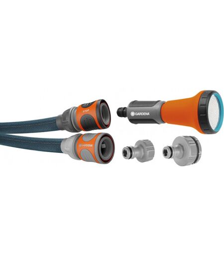 Kit pret a l'emploi, tuyau textile ultra résistant de 15 m pour les séances d'arrosage longues et difficiles • Le kit Liano™ Xtreme 15 m de GARDENA est un kit pret a l'emploi • Le tuyau durable Liano™ Xtreme 15 m est adapté aux petits jardins • Utilisez-le pour les besoins quotidiens, ainsi que pour les séances d'arrosage longues et difficiles le kit comprend les pieces prémontées de l'Original GARDENA system (raccord rapide, raccord aquastop), ainsi qu'une lance de nettoyage et 2 nez de robinet • Les nez de robinet sont utilisés pour raccorder le Liano™ Xtreme a votre robinet • Grâce au joint réducteur intégré dans l'un des deux nez de robinet, le raccordement a trois tailles de robinet différentes est possible • Le tuyau se compose d'un tuyau intérieur en PVC tres flexible aux performances optimales, tandis que le tuyau extérieur innovant en fibres tissées extremement résistantes rend le Liano™ Xtreme durable • Grâce a ses propriétés exceptionnelles, l'innovant Liano™ Xtreme est spécialement conçu pour les situations de jardinage exigeantes • Il est tres résistant, repousse la saleté et affronte sans probleme les terrains accidentés tels que les pavés, les épines des rosiers... • Grâce a son excellente flexibilité, le tuyau d'arrosage est facile a manouvrer et ne se plie pas • Son toucher agréable assure une manipulation confortable. Un autre avantage du Liano™ Xtreme est son poids jusqu'a 50 % inférieur a celui des tuyaux en PVC classiques • Cela rend la séance d'arrosage facile, meme sur de longues périodes • La flexibilité du Liano™ Xtreme fait de lui un tuyau peu encombrant car il s'adapte idéalement a l'espace de stockage disponible • Le tuyau a une pression d'éclatement de 35 bars • Grâce a sa résistance aux UV et au gel, il peut rester a l'extérieur toute l'année • Le Liano™ Xtreme est exempt de substances nocives et donc exempt de phtalates (<0,1%) ainsi que de cadmium, de plomb et de baryum (<0,1%) Caractéristiques techniques • Pression d'éclatement : 35 bar • Contenu : Complete with Original GARDENA System Parts, Sprayer and Tap Connectors 18225/18220 • Longueur du tuyau : 15 m • Diametre du tuyau : 13 mm> ...