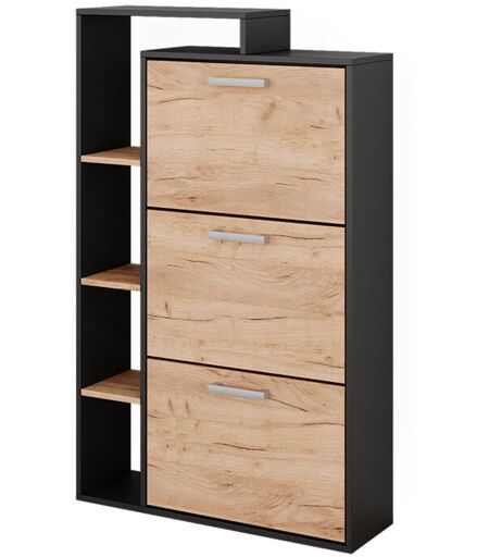 Vicco - Meuble à chaussure Orlando, Chêne de force doré, 80x128.3cm avec 3 compartiments